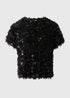 Shine with cosy elegance in this Black Fluffy Sequin Top — a striking fusion of plush texture and shimmer that instantly uplifts any outfit. The fluffy fabric gives softness and dimension, while sequins catch the light to create show‑stopping sparkle. Whether you’re dressing up for evening plans or want a statement piece for a special occasion, this top delivers.