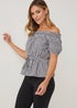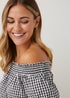 Achieving utterly timeless style, there's so much to love about this gorgeous top. Cut to the uber flattering Bardot style for a dash of oh la la, it comes with a gingham print in black to make outfit-building a doddle. Finished with comfortable short sleeves and a tie detail to the waist, we recommend wearing it with shorts and sandals when the weather heats up. Model Height: 5ft 9.