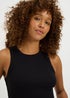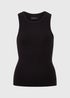 A sleek staple for everyday styling. This black ribbed vest top is crafted from soft, stretch cotton and cut with a flattering high neckline and a classic sleeveless vest shape. Comfortable and versatile, it works perfectly as a layering essential or a go-to summer piece worn on its own.