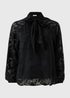 Black Jacquard Tie Neck Blouse