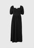 Effortless style meets comfort in this black jersey midi dress. Featuring a shirred square neckline, short puff sleeves, and a floaty midi length, it drapes beautifully in soft, cool jersey fabric. Its plain black design gives off relaxed boho vibes and makes it easy to dress up or down depending on the occasion.