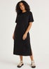 Learn moreThis 100% jersey cotton dress is here to take all-day comfort to the max. In a black base colour, it comes with a soft ribbed texture and side split detailing to add some edge to the design. A simple neckline and easy breezy short sleeves finish the look - ideal for teaming with sandals or trainers.