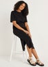 This 100% jersey cotton dress is here to take all-day comfort to the max. In a black base colour, it comes with a soft ribbed texture and side split detailing to add some edge to the design. A simple neckline and easy breezy short sleeves finish the look - ideal for teaming with sandals or trainers.