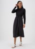 Learn moreIntroducing our elegant Black Jersey Woven Midi Dress - a perfect blend of comfort and style for any occasion. Crafted from a luxurious jersey fabric, this dress offers a soft touch and a graceful fall. The woven fabric adds a touch of sophistication, ensuring you look as fabulous as you feel. Featuring a round neckline and long sleeves, it provides modest coverage while accentuating the feminine silhouette with its cinched waistline and flowing skirt. Versatile in its design, this midi dress transitions effortlessly from day to night, promising to be a cherished piece in your wardrobe.