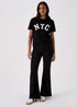 Learn moreStep into a trend-forward look with these Black Kick Flared Trousers for ladies. Featuring a stylish kick-flared silhouette and seam front detail, these trousers effortlessly blend comfort with a touch of edge. The classic black colour adds versatility, making them suitable for various occasions, from casual outings to more polished ensembles. Elevate your wardrobe with the Black Kick Flared Trousers