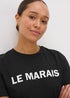 Look effortlessly stylish with our Le Marais Graphic Crew Neck T-Shirt in black. This must-have tee is crafted from a soft and comfortable 100% cotton, ensuring that you stay at ease all day long. Its black base is adorned with an eye-catching cream graphic, making it a perfect piece to elevate your casual look. Layer it under a blazer or jacket for a more polished ensemble.
