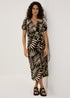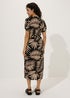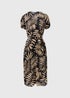 Black Leaf Print Midi Dress