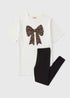 Learn moreAdd a touch of glamour to your nightwear with this Black Leopard Bow Pyjama Set. Featuring a bold leopard print with a sleek black leggings, this set is crafted from soft, lightweight fabric for all-night comfort. The delicate bow detail adds a feminine finish, while the relaxed fit makes it perfect for lounging or bedtime. Stylish yet cosy, it’s a must-have addition to your pyjama collection.
