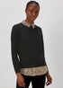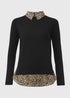 Add a statement piece to your wardrobe with this 2-in-1 jumper. The black jumper features a classic crew neckline and long sleeves, whilst the leopard print shirt insert adds a stylish finish. Perfect for teaming with denim on off-duty days.