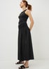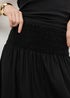 Effortlessly boho with a modern edge, this black midaxi skirt is made for easy, everyday styling. Crafted from a soft linen and viscose blend, it drapes beautifully with a light, floaty feel. The midaxi length creates a relaxed silhouette, while the stretchy shirred waistband ensures a comfortable and flattering fit.