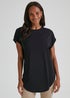 There's no such thing as having too many T-shirts, so why not try ours? Our black longline essential tee is cut with short turn-up sleeves and a round neck. Pair with all your favourite leggings and jeans for simple style that wins every time. Model Height: 5ft 10.
