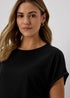 This wardrobe essential boasts a clean, minimalist design in a classic black hue. The longline cut offers a flattering silhouette, perfect for pairing with leggings or jeans for a casual yet refined look. Crafted from premium, soft fabric, it ensures comfort all day long.