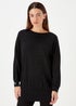 Learn moreClassy yet cosy, this top is cut with a billowing longline silhouette for relaxed comfort. Styled with a black base for easy pairing, it's cut with cosy cuffed long sleeves and finished with a statement round neckline. Great for throwing on with jeans and trainers. Model Height: 5ft 9 1/2.
