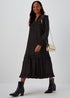 Learn moreThis midi dress is perfect for adding a touch of shimmer to your evening look. Featuring long, floaty sleeves, a sophisticated tie neck and beautiful tiered detailing, it's finished with relaxed fit for added comfort and metallic detailing to make it stand out. Style with heels and statement earrings to complete the outfit.