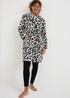 Wrap up in style with the Black Mono Animal Print Dressing Gown. Featuring a bold all-over animal print and crafted from soft, plush fabric, this cosy gown is perfect for adding a touch of glamour to your loungewear. Finished with a tie waist and handy pockets for extra comfort.