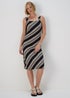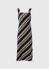 Black Mono Diagonal Stripe Crinkle Midi Dress