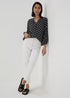 Introducing the Black Mono Spots Viscose Blouse - a perfect blend of comfort, style, and elegance. Crafted from premium quality viscose, this blouse promises a soft touch and a comfortable fit. The black base adorned with white spots adds a classic yet playful touch to your attire. Featuring a collarless design and three-quarter sleeves, it is versatile for both casual and formal settings. Pair it with your favourite jeans for a casual look or tuck it into tailored trousers for a more polished appearance.