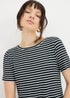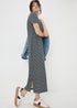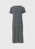 Monochromatic and minimalist, the Black Mono Stripe T-Shirt Midi Dress is a versatile addition to your wardrobe. Cut from a soft and structured cotton blend, this dress offers both comfort and style. Featuring a classic crew neck and short sleeves, it's perfect for layering or wearing alone. The dress falls to a relaxed, straight silhouette with an elongating midi length. It's finished with a bold, block stripe pattern in contrasting black and white hues, adding a touch of modern edge to this wardrobe staple.