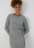 Introducing our elegant Black Mono Stripe Tie Side Midi Dress, a perfect blend of style and comfort. Adorned with classic monochromatic stripes, this dress exudes a timeless aesthetic. The tie-side detail not only adds a touch of sophistication but also allows for an adjustable fit, ensuring comfort without compromising style. The midi length and long sleeves make it versatile for various occasions, be it a casual day out or an evening event.