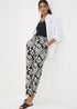 Effortlessly chic and versatile, our Black Monochrome Printed Tapered Trousers will elevate your off-duty wardrobe. Crafted from a soft and durable fabric blend, the striking monochrome print adds a touch of contemporary flair, while the tapered leg creates a flattering silhouette.