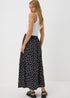 Black Monochrome Spot Flared Hem Midaxi Skirt