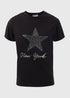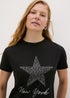 Our black New York graphic t-shirt is an essential addition to any modern woman's wardrobe. Made from a soft, 100% cotton fabric, this top is comfortable and stylish at the same time. The bold, black colour is accented with a striking graphic NEW YORK and star print, creating a visually interesting piece that will turn heads wherever you go. Pair it with your favourite jeans or trousers for a casual day look, or dress it up with a skirt and heels for a night out on the town.