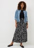 The Black Paisley Flared Hem Skirt brings timeless style and movement to your wardrobe. Crafted from lightweight, flowy fabric, this skirt features an elegant paisley print in soft contrasting tones and a flattering flared hem that sways beautifully as you walk.