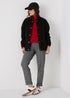 Learn moreThese chic and versatile pull-on ponte trousers in classic black pattern are a must-have for your wardrobe. Crafted from a blend of soft and durable ponte materials, they offer both comfort and style, making them perfect for any occasion. Dress them up with a crisp white shirt and heels for a polished workwear look or pair them with a cosy jumper and boots for a casual weekend outfit.