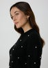Learn moreThis gorgeous Black Pearl Embellished Jumper is the perfect way to add a touch of luxury to your everyday wardrobe. With its classic crew neckline, long sleeves, and soft, fluffy knit, it's perfect for keeping you cosy and stylish on chilly days. The delicate pearl embellishment adds a touch of femininity and sophistication, making this jumper a versatile piece that can be dressed up or down. Dress it up with a pair of tailored trousers and heels for a smart, office-ready look or pair it with your favourite jeans and trainers for a casual, everyday outfit.