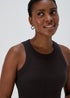 Black Plain High Neck Ribbed Vest