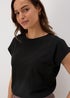 Learn moreThe Black Plain T-Shirt is a timeless staple that belongs in every woman's wardrobe. Crafted from the finest cotton, this tee offers a supremely soft and comfortable feel against your skin. In a classic versatile black hue and featuring a crew neckline, Its versatile design makes it suitable for a multitude of occasions, from casual days out to relaxed weekends at home. Pair with your favourite jeans and trainers for a casual day look or add a blazer and heels to dress it up for the office.