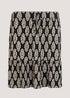 Elevate your skirt collection with this charming black number. Cut with a mini silhouette, the skirt is styled with a contrasting all-over print and finished with a ribbed texture. Additional style notes include a stretchy elasticated waistband with tie detailing and tiered hem.