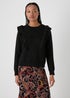 Our black pointelle frill knitted jumper is the perfect addition to your wardrobe. This stunning jumper is crafted from luxurious black knit material and features a delicate frill detailing and lace detailing along the neckline. The pointelle style silhouette is flattering and comfortable ensuring a perfect fit. Pair with jeans and trainers for a casual everyday look or pair with heels and a skirt for a smart casual look.