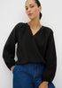 Our Black Popover Blouse is the perfect blend of effortless style and everyday elegance. Made from a lightweight, flowy fabric, this blouse features a relaxed fit with a subtle V-neckline and popover front. An easy go-to for both work and weekend looks.