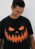 Learn moreGet ready to turn heads this Halloween with our Black Pumpkin T-Shirt. This wickedly stylish tee is sure to be a hit at any Halloween shindig. Featuring an eye-catching orange pumpkin graphic and bold black colour, you'll be the spookiest guy at the party. With a relaxed fit, crew neckline and short sleeves. Pair with your favourite black jeans and trainers for a casual Halloween look or dress it up with a blazer and dress trousers for a more formal Halloween event.