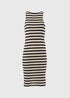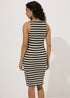 Step into effortless elegance with our Black Racer Textured Knit Dress, a timeless piece that exudes sophistication and ease. Crafted from a premium textured knit fabric, this dress offers a flattering drape that effortlessly skims your figure, providing both comfort and style. In a black and cream mono print, in a racer neck style. For a relaxed daytime look, pair it with sandals, a denim jacket, and a crossbody bag, effortlessly blending style with comfort.