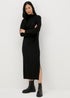 Black Ribbed Roll Neck Midi Dress
