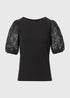 Body: 96% Viscose, 4% Elastane. Sleeves: 100% Polyester