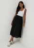Black Satin Pleated Midi Skirt