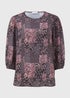 Add a chic and playful piece to your collection with this black bubble top. Cut in a relaxed fit with cuffed sleeves for a timeless finish, it features an all-over scarf print for added interest. Style with jeans and boots to complete the look.