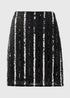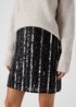 Learn moreYou'll light up the night with this stunning black sequin mini skirt, featuring a luxurious shimmering sequin embellishment that catches the light with every move you make. Get set to turn heads and steal the spotlight in this captivating dress! Featuring a black and silver stripe pattern, this skirt adds a glamorous touch to any occasion.
