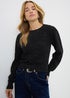 Add a touch of sparkle to your winter style with this Black Sequin Yarn Jumper. Crafted from a soft, cosy knit, it’s woven with subtle sequin threads that catch the light beautifully, bringing a hint of shimmer to your cold-weather wardrobe.