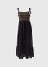 Learn moreA stunning piece perfect for any occasion, our black shirred cami midi dress is the epitome of elegance and sophistication. Crafted from luxurious fabric, this dress features intricate shirring along the bodice in brown and black stripes, creating a flattering silhouette that effortlessly contours the body. The adjustable cami straps ensure a comfortable and customizable fit, while the midi length adds a touch of demure charm. Pair with sandals and a cardigan for a cool summer evening or pair with heels for a nice evening meal.