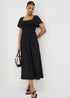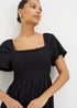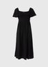 Learn moreOur Black Shirred Midi Dress is the epitome of effortless style. Crafted from a premium blend of fabrics, this mini dress exudes elegance and comfort. The shirred bodice flatters your figure. Pair it with sandals for a relaxed daytime look, or elevate it with heels and a clutch for a sophisticated evening ensemble.