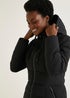 Learn morePutting a sporty spin on outerwear essentials, you'll brave the cold weather with ease when wearing this snuggly coat. Created with soft and comfortable padded fabric and featuring a versatile black colourway, it comes with an easy and fashionable short length. Practical functions include a protective hood with drawstrings to customise your fit, a full zip front, and two secure zip pockets. Length: 79cm.