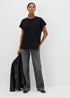 Elevate your everyday essentials with our Short Sleeve Ponte T-Shirt in classic black. Crafted from a luxurious ponte knit fabric, this shirt offers a sleek, structured fit that flatters every shape while providing all-day comfort. Team with jeans and trainers for a casual weekend outfit.