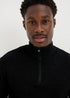 Elevate your everyday wardrobe with the Black Smart Ribbed 1/4 Zip Jumper. Designed with a sleek ribbed texture and a polished quarter-zip neckline, this versatile piece blends comfort with sophistication, perfect for layering over shirts or wearing solo for a refined smart-casual look.