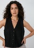 Learn moreElevate your wardrobe with the timeless sophistication of the Black Solid Linen Button Vest. Crafted from high-quality linen, this vest exudes a sense of understated elegance and durability. The solid black colour offers versatility and a classic look that can be dressed up or down for any occasion. Featuring a V-neckline and sleeveless design, it provides both comfort and style. The front closure boasts a line of buttons that add both functionality and a touch of charm to the garment. Whether layered over a crisp shirt for formal events or paired with casual attire for an evening out, this vest is an essential piece for those who appreciate fine tailoring and effortless style.