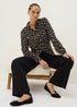 Discover our chic and versatile black spot shirt, the perfect staple for your contemporary wardrobe. Designed with the modern woman in mind, this blouse seamlessly blends classic elegance with a touch of edgy sophistication. Pair with trousers and heels for a perfect office outfit or pair with jeans and trainers for a more casual everyday look.