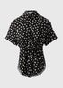 Embrace chic simplicity with the Black Spot Tie Waist Longline Shirt. Featuring a classic black and white polka dot pattern, this shirt adds a playful yet sophisticated touch to your wardrobe. The longline silhouette offers a flattering, elongated look, while the tie waist cinches at the waist to create a more defined shape. With a button-down front and a timeless collar, this shirt is perfect for both casual and smart-casual occasions.